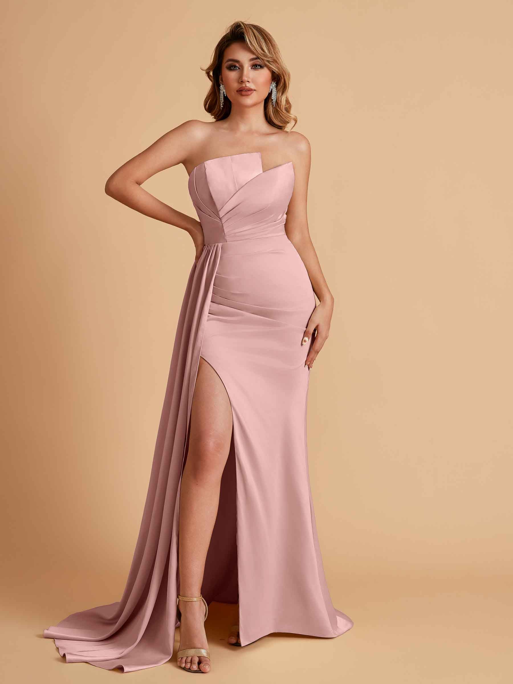 Elegant Satin Sleeveless Asymmetrical Mermaid Side Slit Floor Length Bridesmaid Dresses