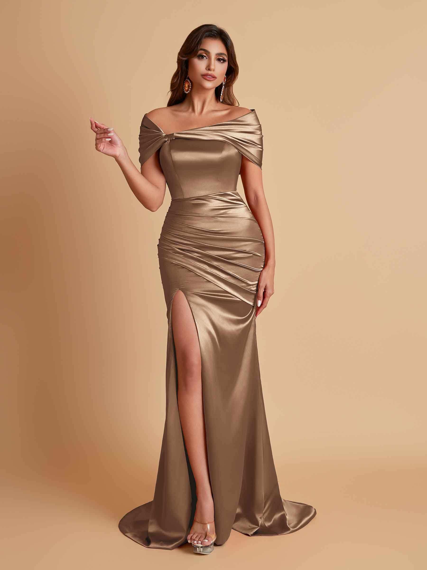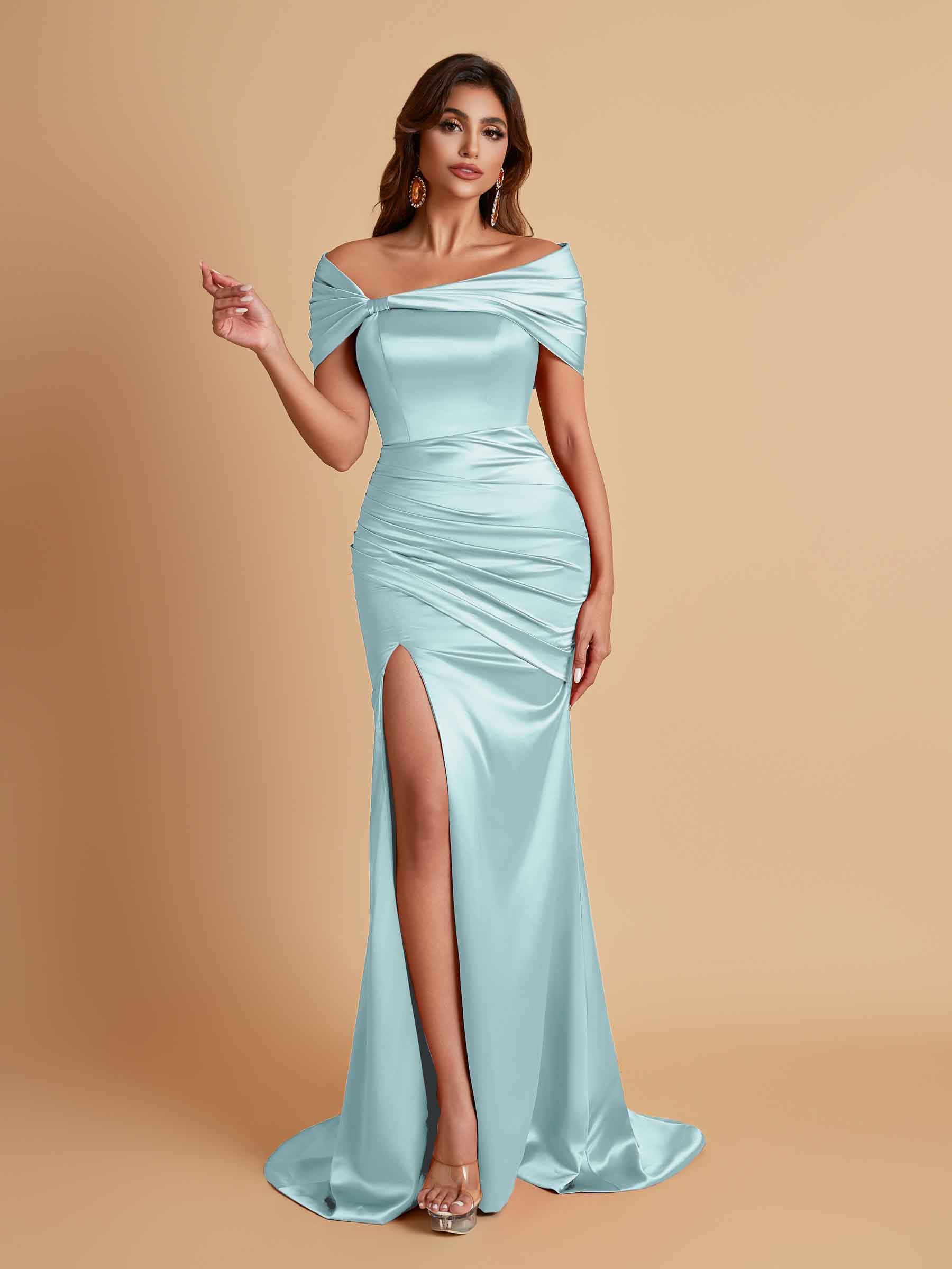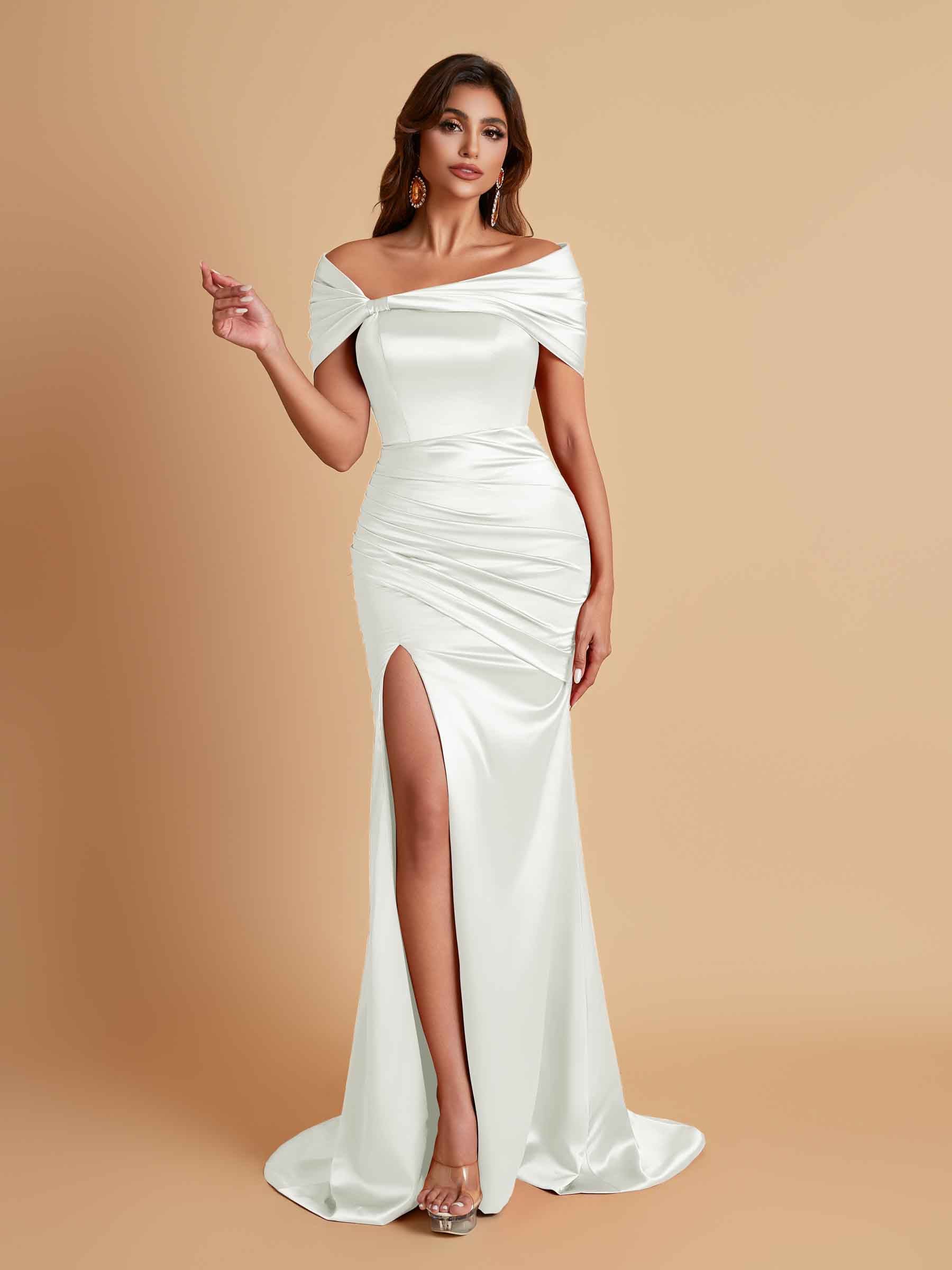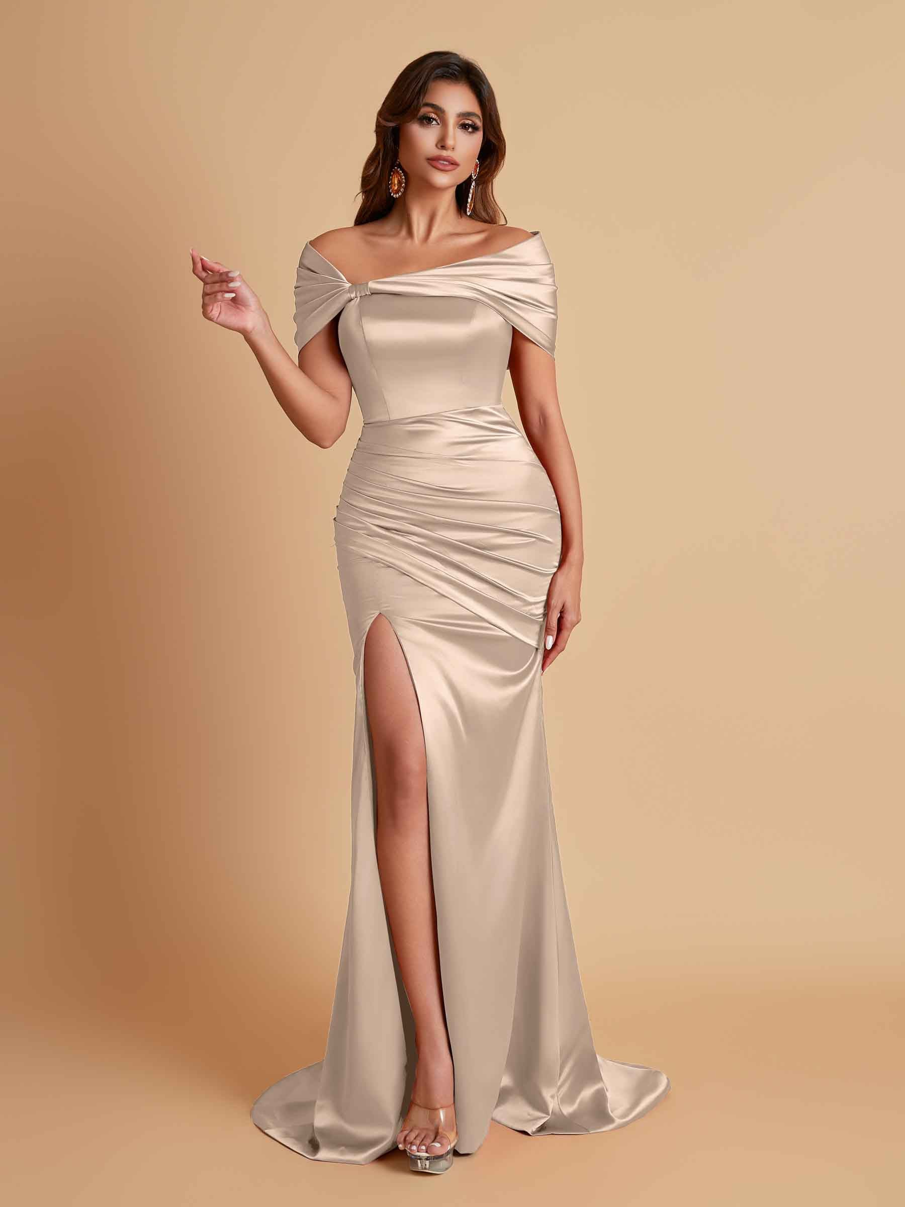 Elegant Soft Satin Off-the-shoulder Side-Slit Mermaid Bridesmaid Dresses