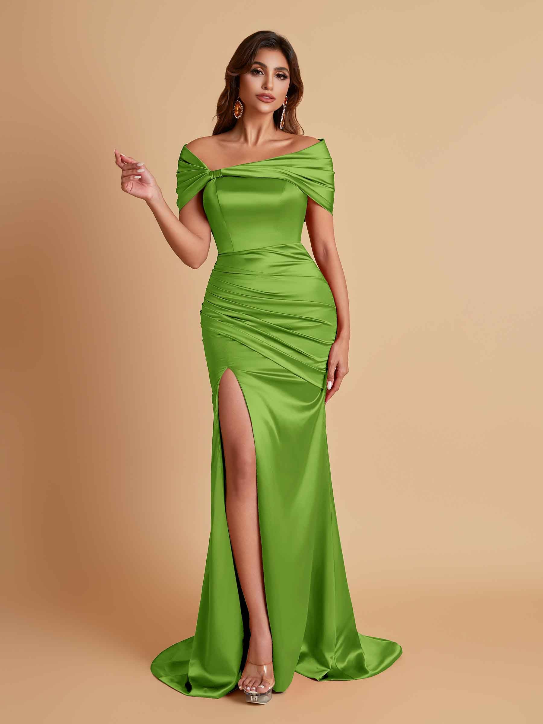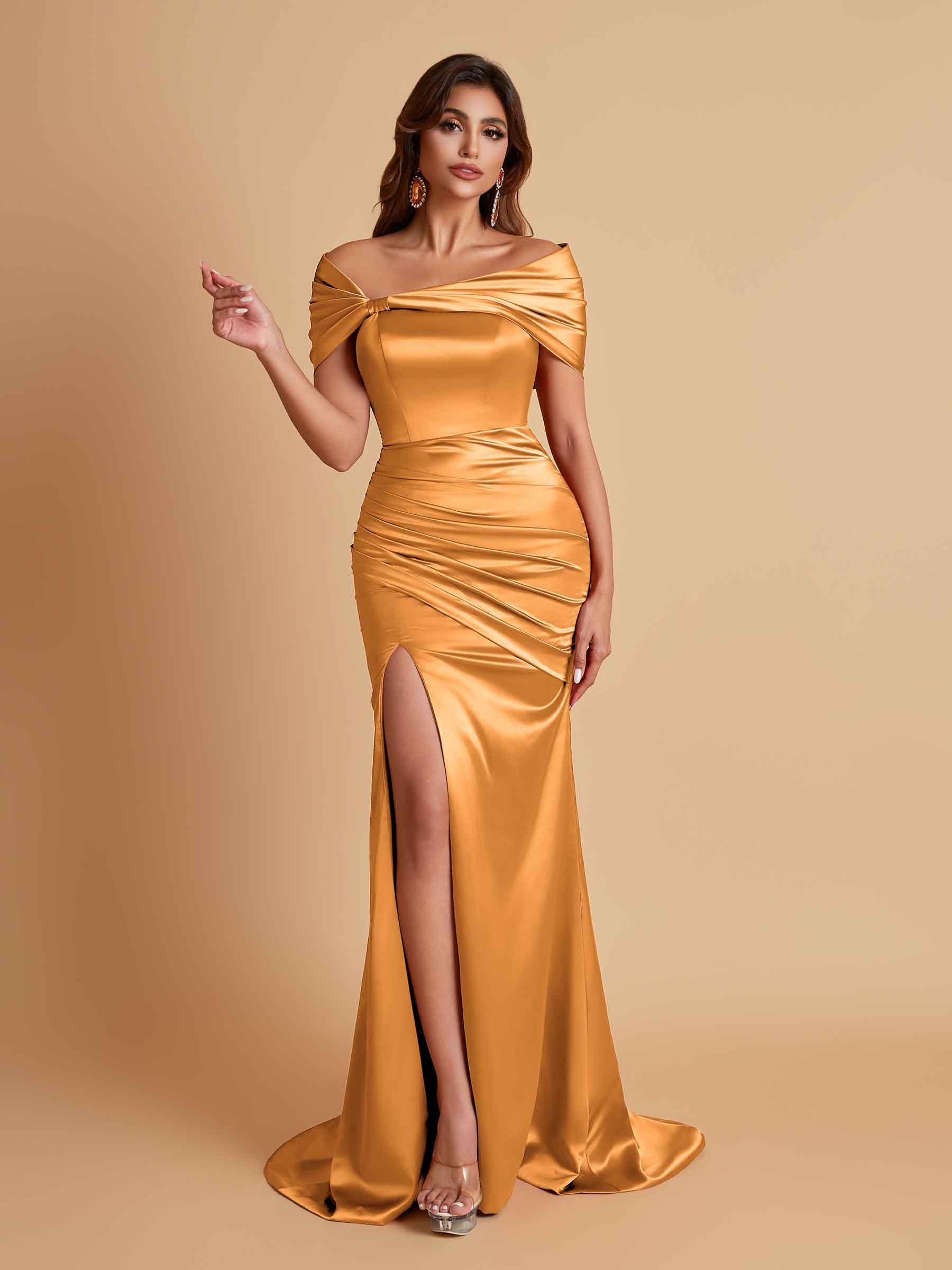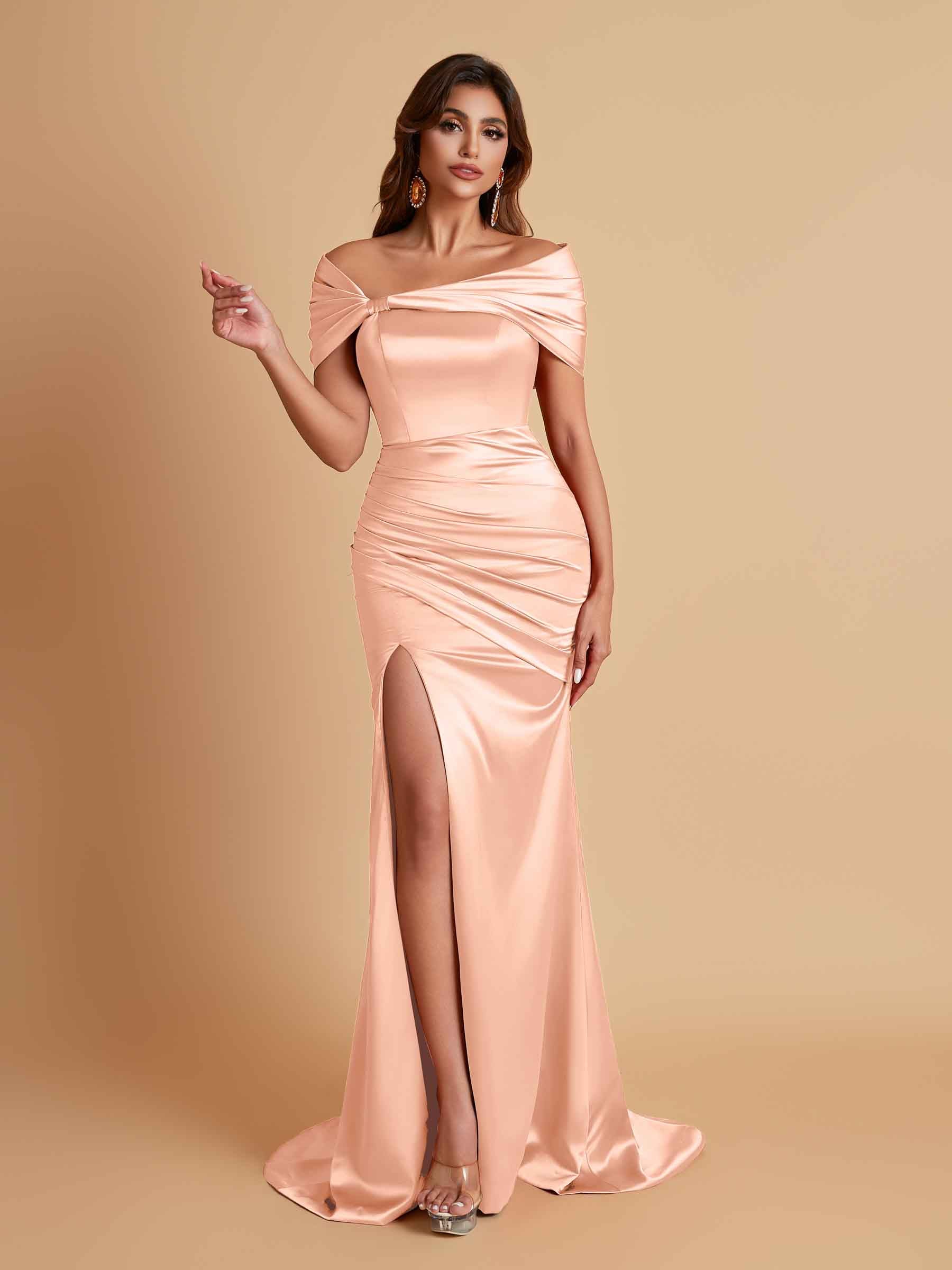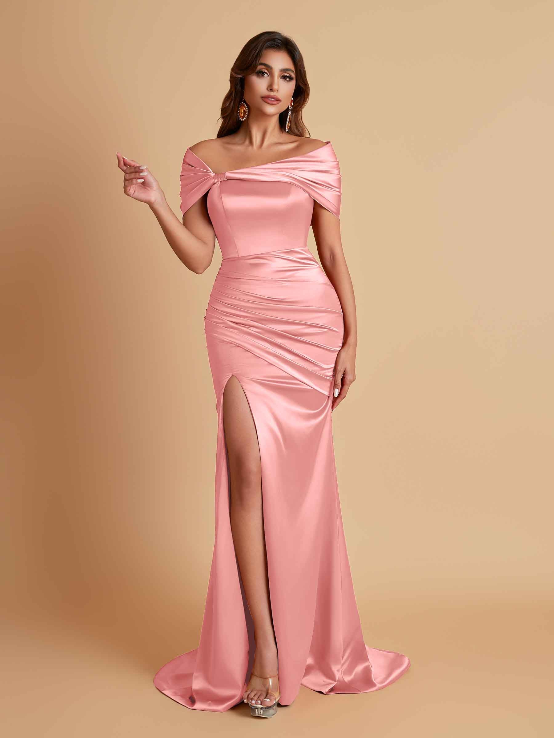 Elegant Soft Satin Off-the-shoulder Side-Slit Mermaid Bridesmaid Dresses