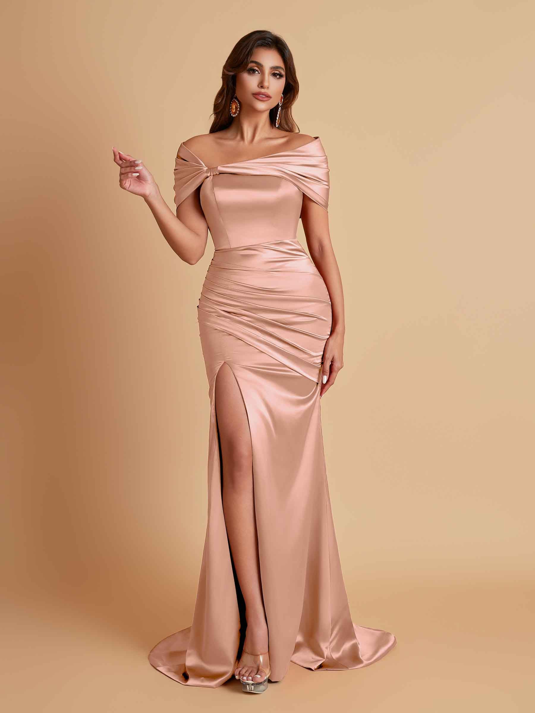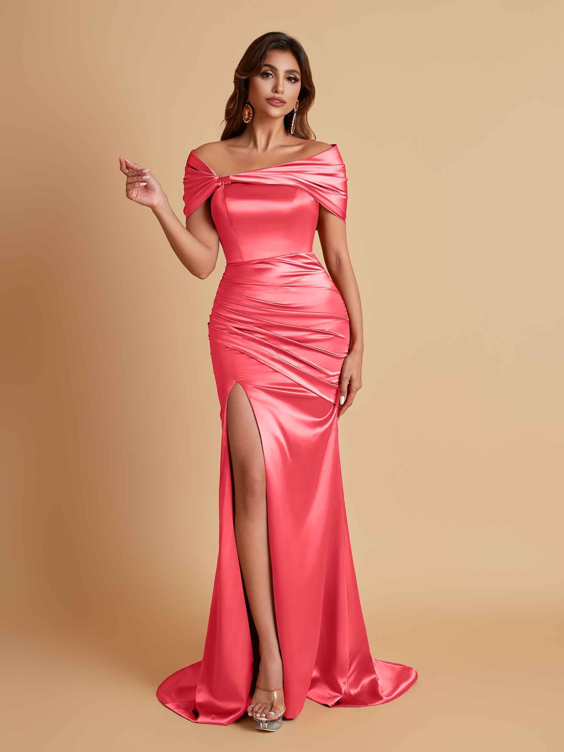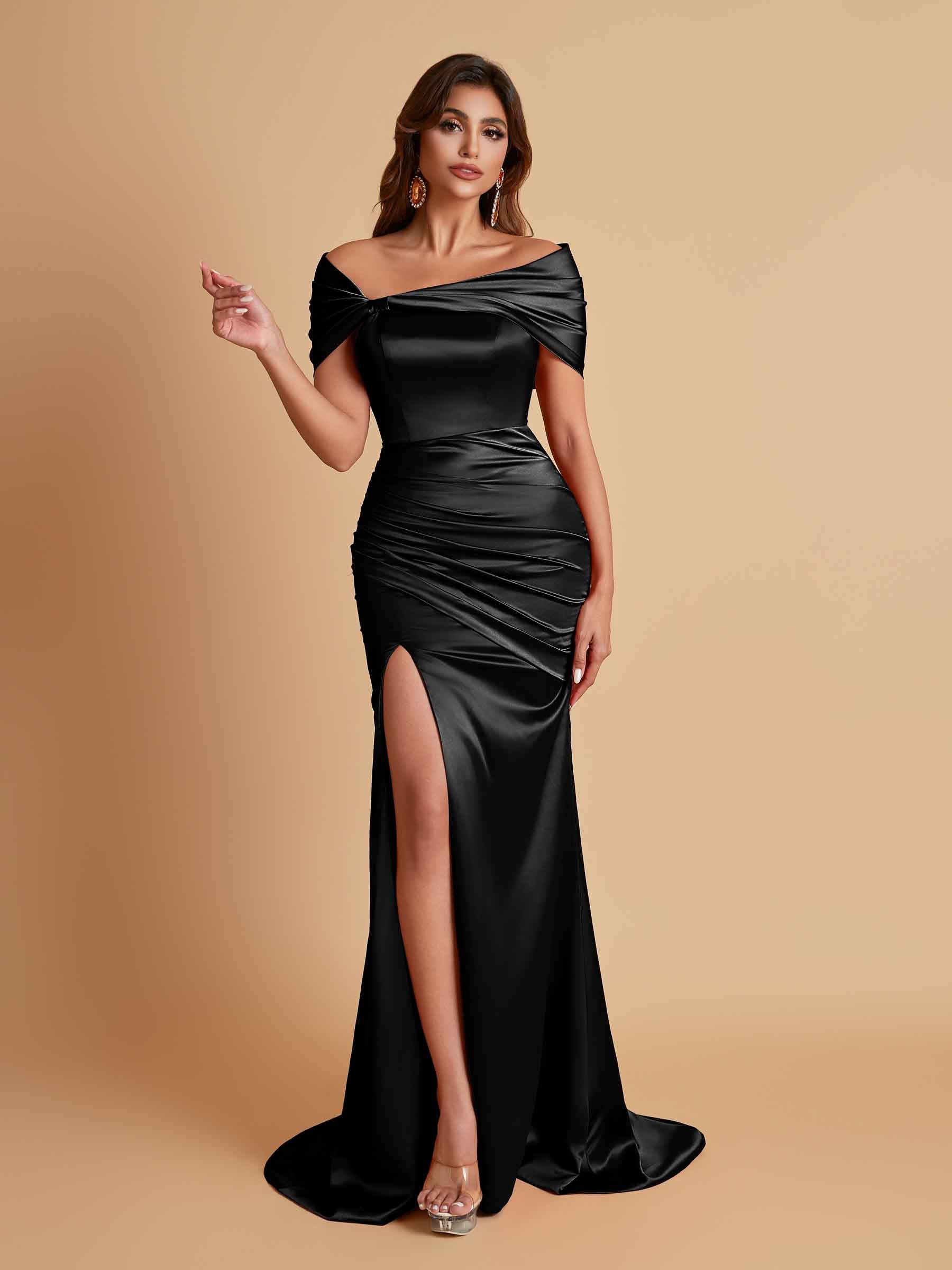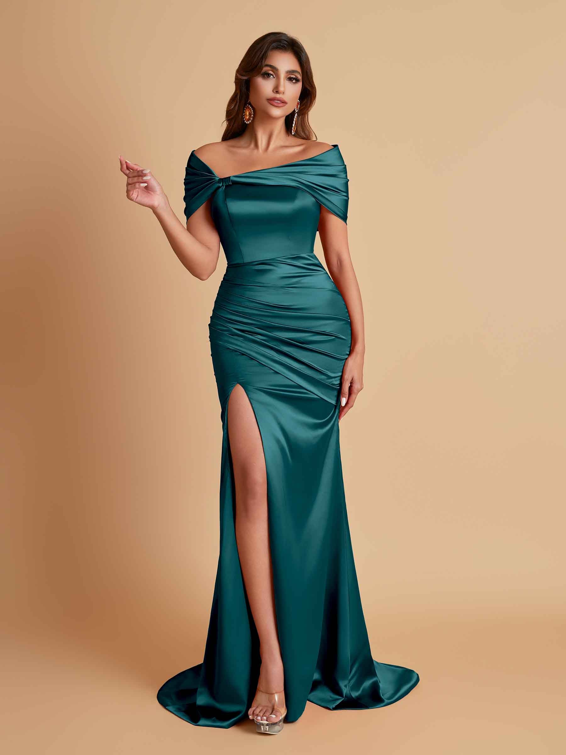 Elegant Soft Satin Off-the-shoulder Side-Slit Mermaid Bridesmaid Dresses