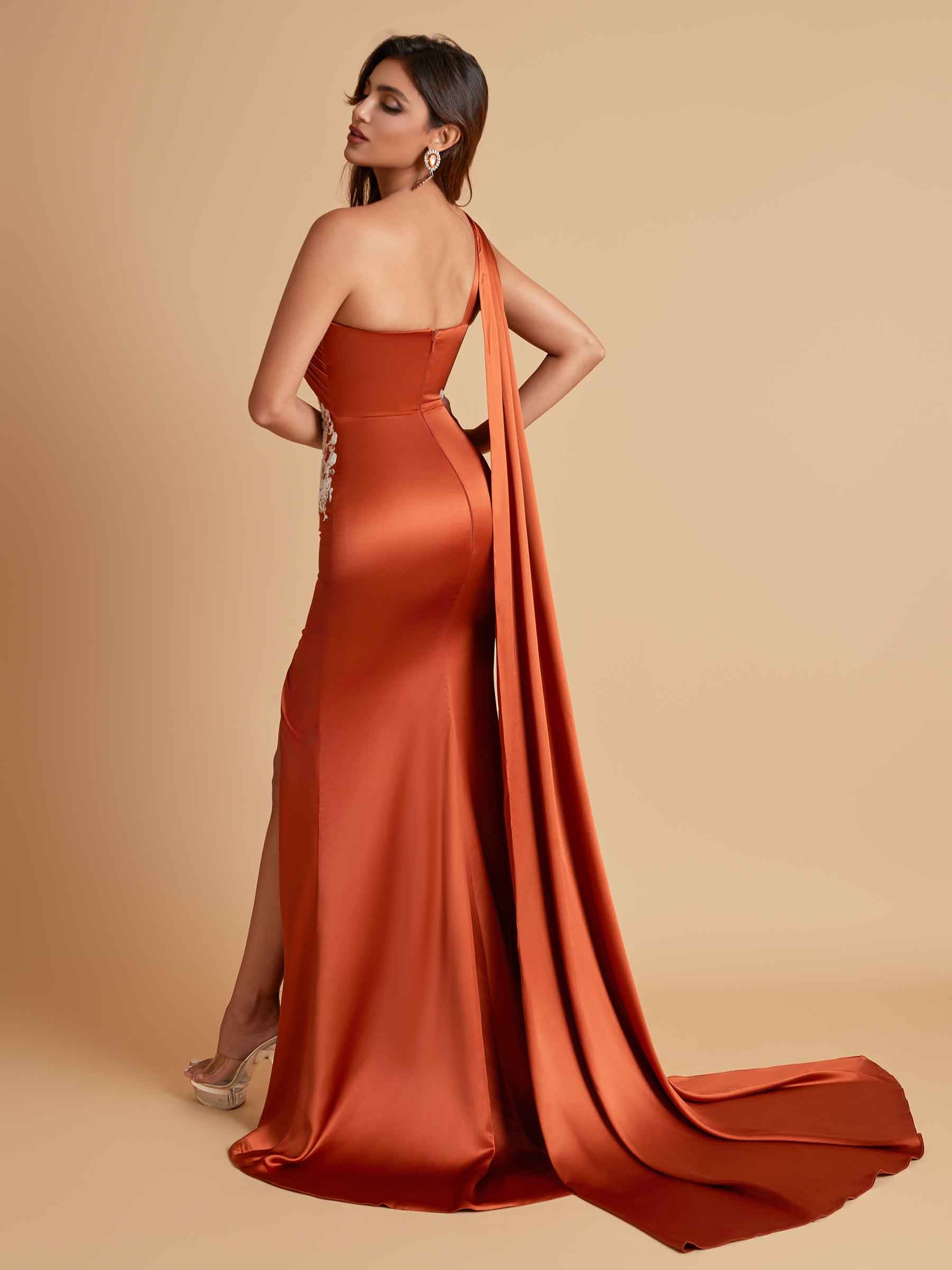 Elegant Soft Satin Sweetheart One Shoulder Side-Slit Mermaid Bridesmaid Dresses