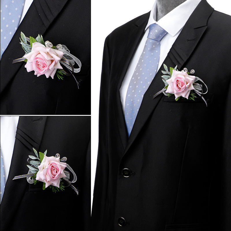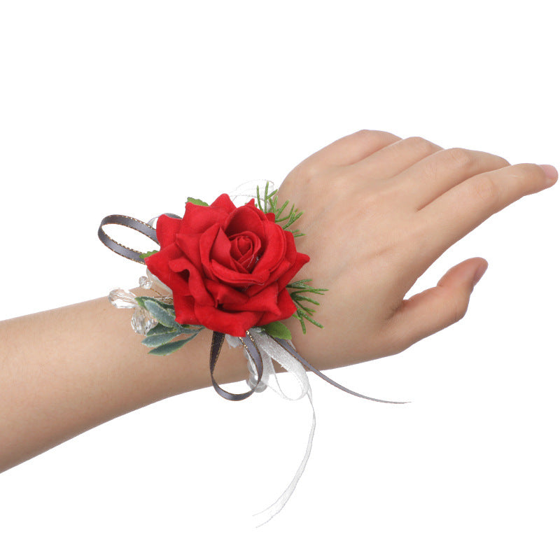 Mori Rose Bride and Groom Wrist Flower Brooch Wedding Sisters Group Hand Flower Groomsmen Group Corsage