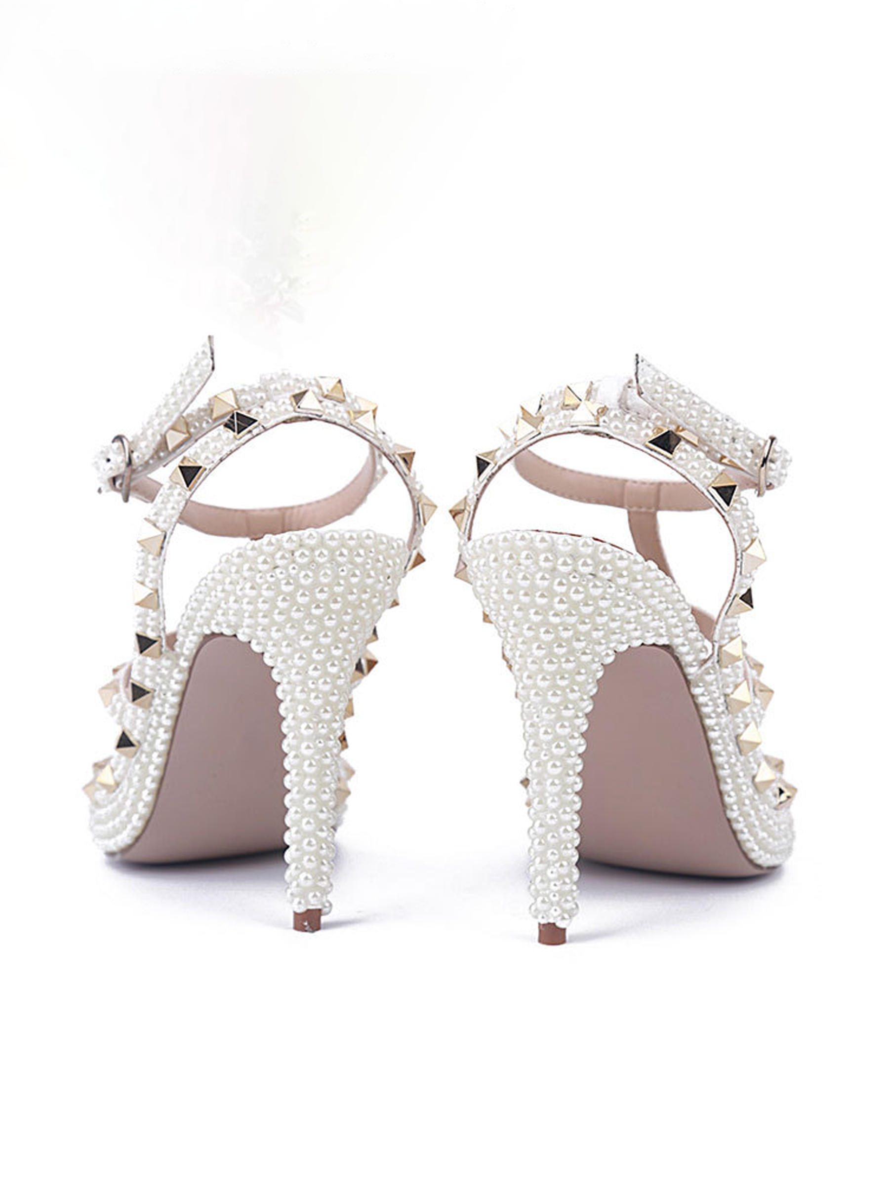 Womens Platform Wedding Shoes Slingback High Heel Party Evening Sandals with Pearl