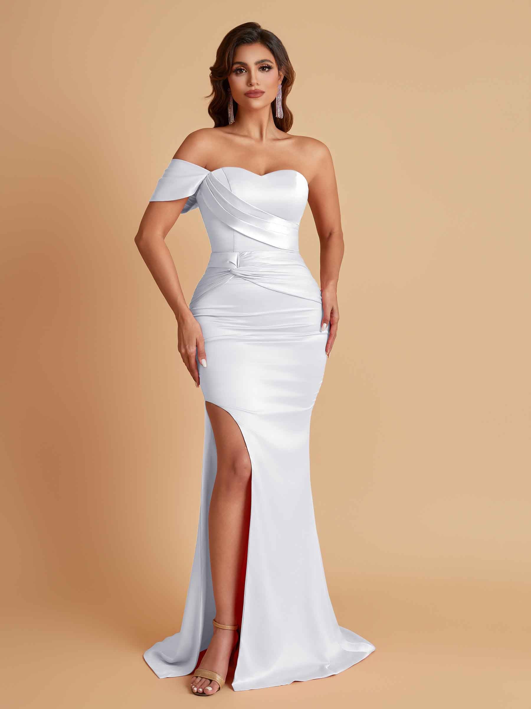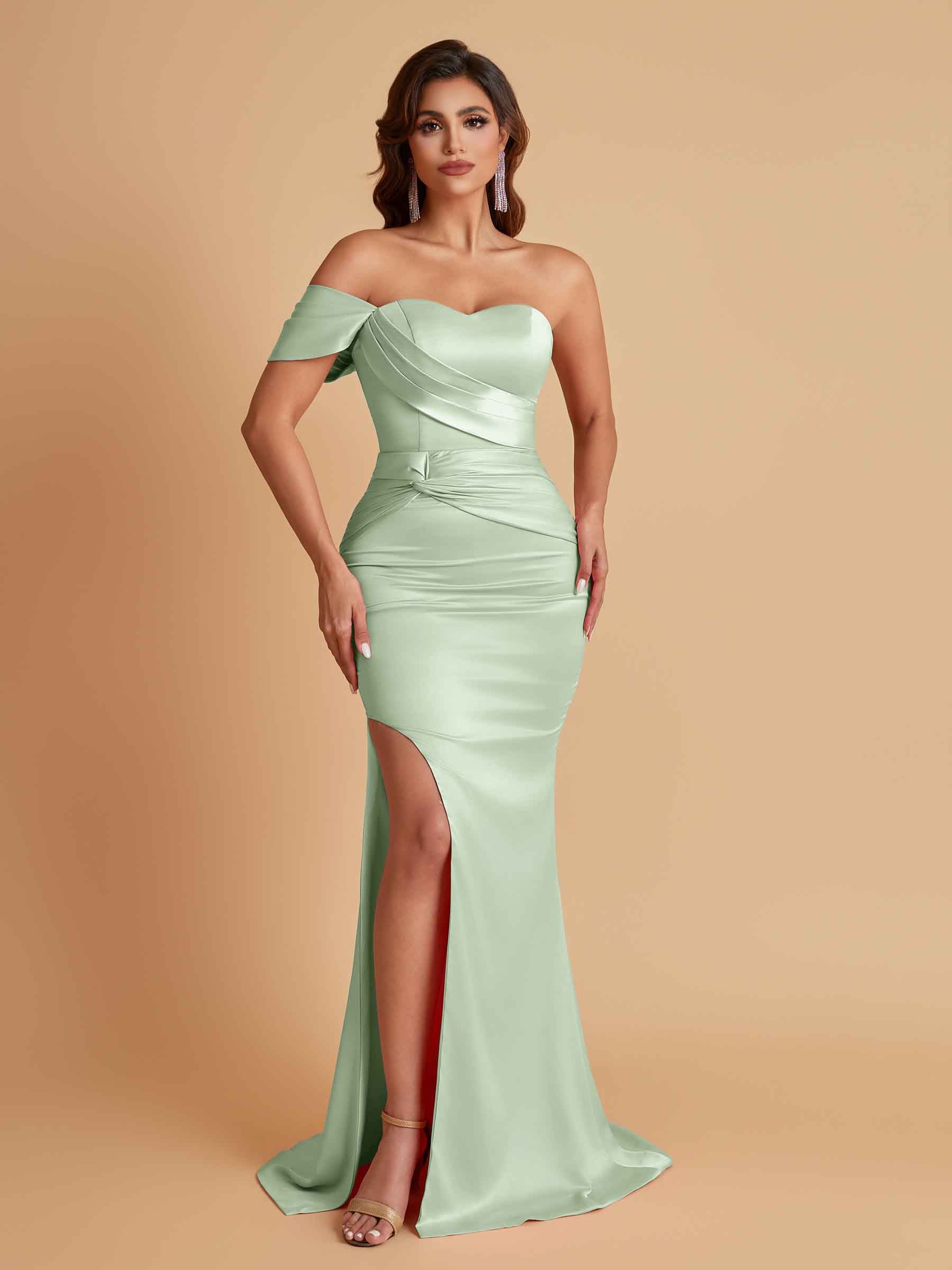 Sexy Soft Satin Mermaid One Shoulder Floor-Length Mermaid Bridesmaid Dresses